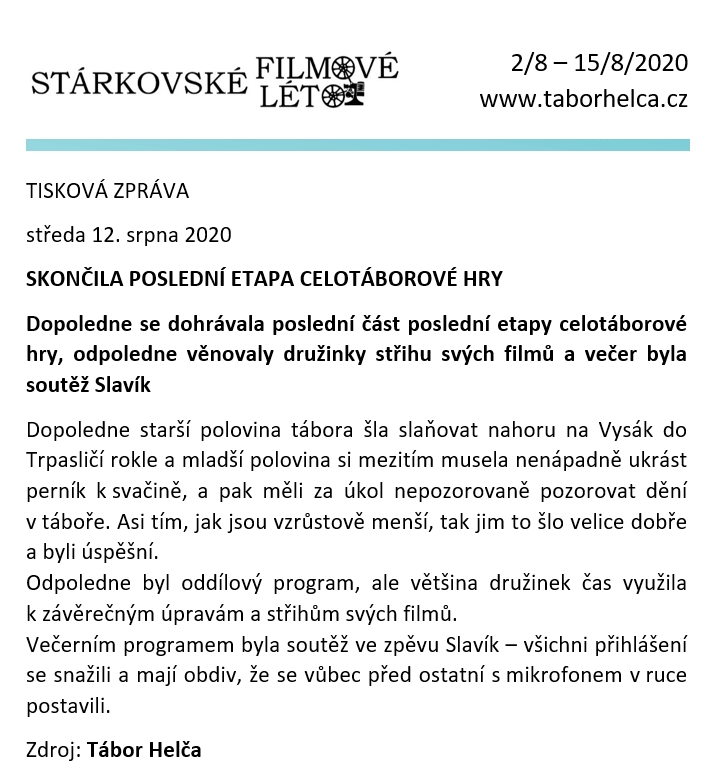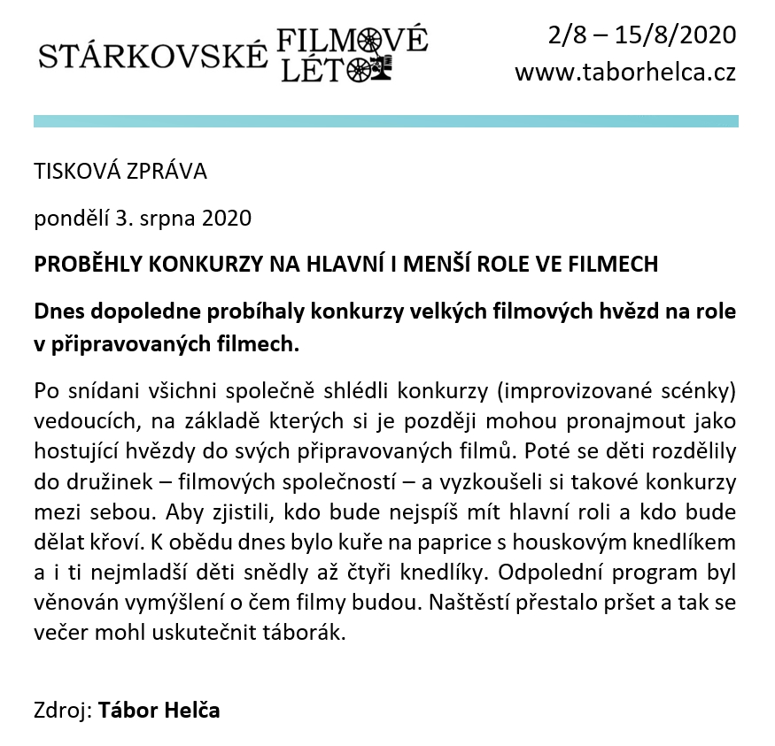 Tiskové zprávy ze Stárkovského filmového festivalu